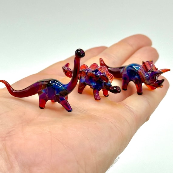 Glass Dinosaur Set Of Three Cosmic Herbivore Collection Etsy Uk
